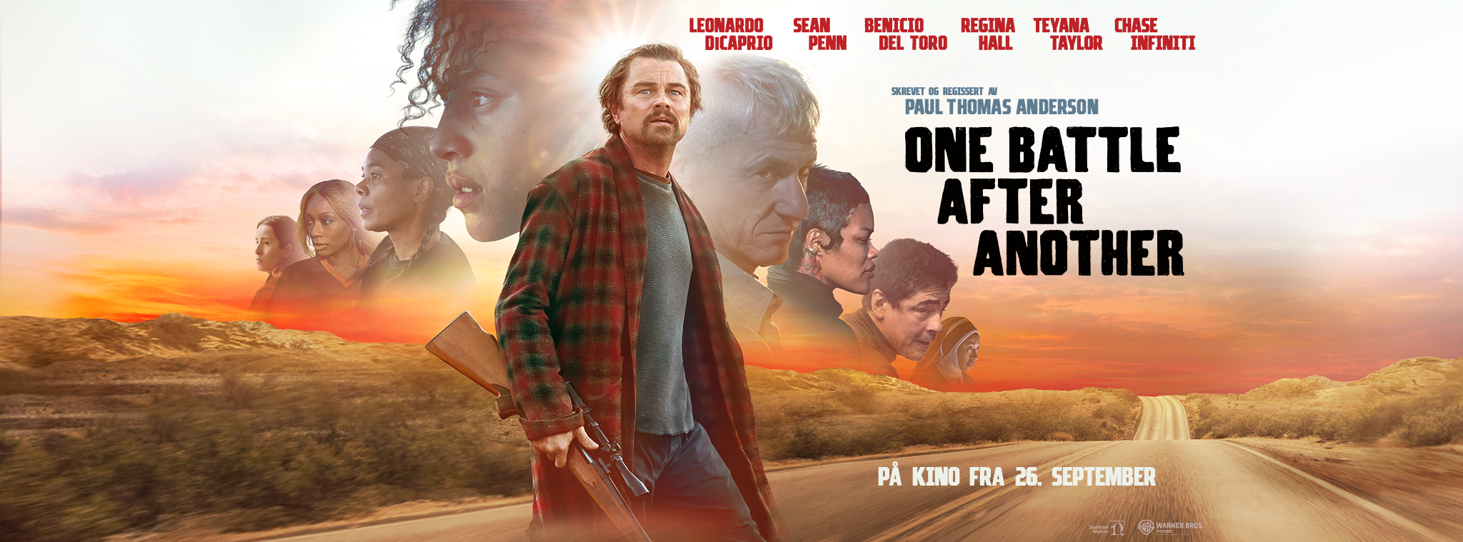 Fra Warner Bros. Pictures kommer "One Battle After Another", skrevet, regissert og produsert av Paul Thomas Anderson, og med Leonardo DiCaprio, Sean Penn og Benicio Del Toro i hovedrollene, sammen med Regina Hall, Teyana Taylor og Chase Infiniti.