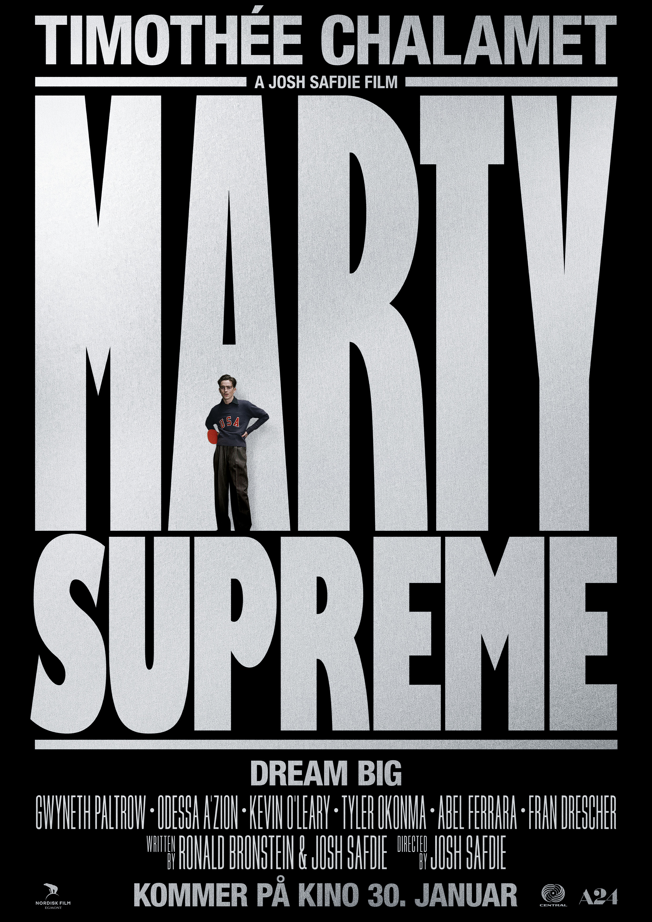 I Marty Supreme spiller prisbelønte Timothée Chalamet rollen som Marty Mauser – en ung, karismatisk drømmer som legger ut på en hektisk og nådeløs reise for å oppfylle sitt livslange mål om internasjonal berømmelse. Marty’s søken etter heder og ære tar ham på en smått sinnssyk ferd gjennom 1950-tallets New York, Paris, London, Kairo og Tokyo, hvor ingen ting er hellig, og hvor familie og vennskap ofres og han brenner broer – ofte mens han selv står på dem.