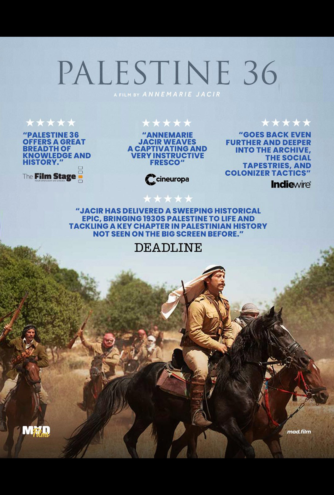 Annemarie Jacirs storslåtte historiske drama tar oss tilbake til Palestina under det britiske mandatet i 1936 – et vendepunkt i landets historie.